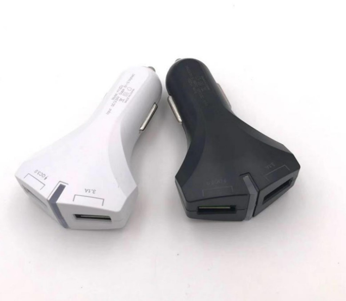 מטען רכב 2 יציאות USB יציאה אחת 3.1A ויציאה שניה 3.0QC. מגיע עם כבל אייפון.